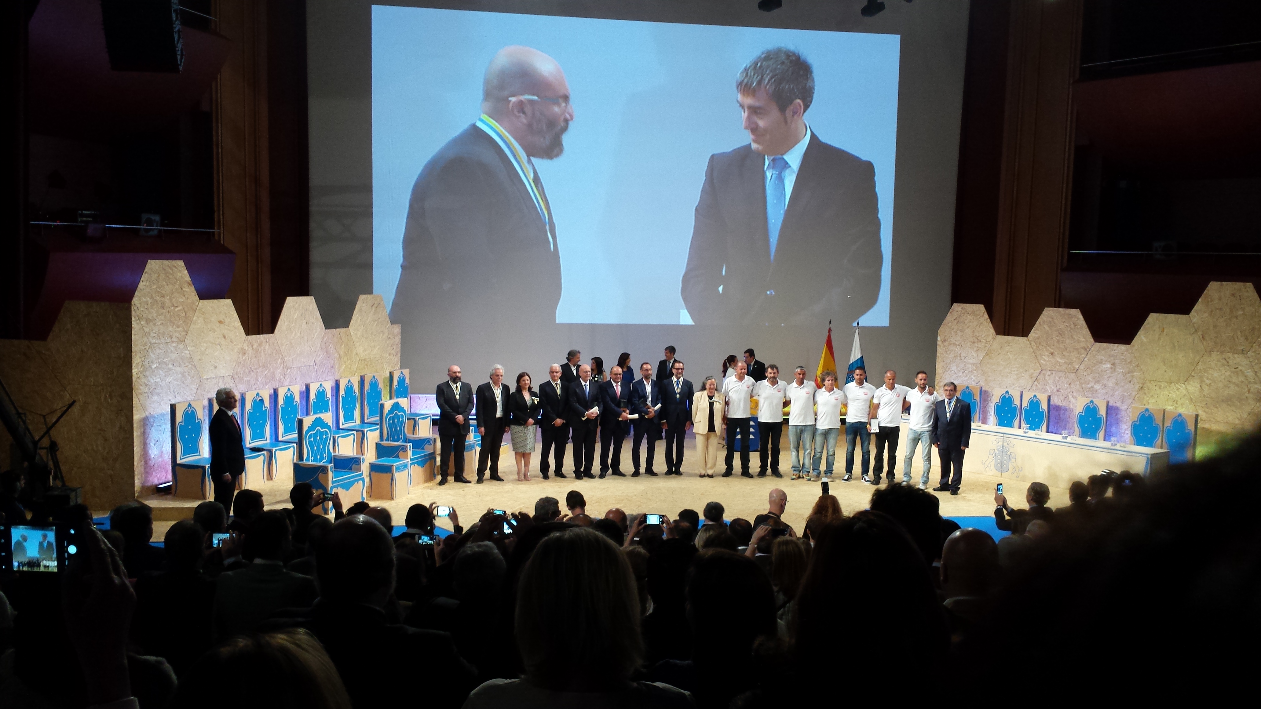 Un grupo de madres y padres, profesores y Hermanos asistieron al acto de entrega de la Medalla de Oro 2016 del Gobierno de Canarias al Colegio La Salle San Ildefonso por su trayectoria y labor educativa desarrollada durante más de 100 años en la isla de Tenerife, donde se han formado miles de jóvenes que trabajan en multitud de campos profesionales repartidos por todo el mundo.